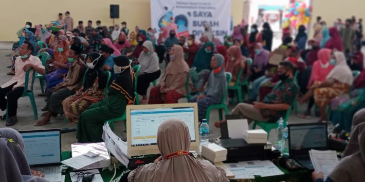 DEMAKMU.COM – Demak. Pimpinan Daerah Muhammadiyah (PDM) Demak adakan kegiatan “Vaksinasi Massal Covid-19 Muhammadiyah Untuk Semua”, Sabtu (23/10/2021). Kegiatan diawali di Desa Kenduren Kecamatan Wedung Demak, tepatnya di Gedung Serbaguna Desa Kenduren yang diikuti oleh ratusan orang dari berbagai usia. Selanjutnya vaksinasi ini juga akan dilaksanakan di beberapa tempat lainnya di Kabupaten Demak namun panitia belum menentukan lokasi pastinya.