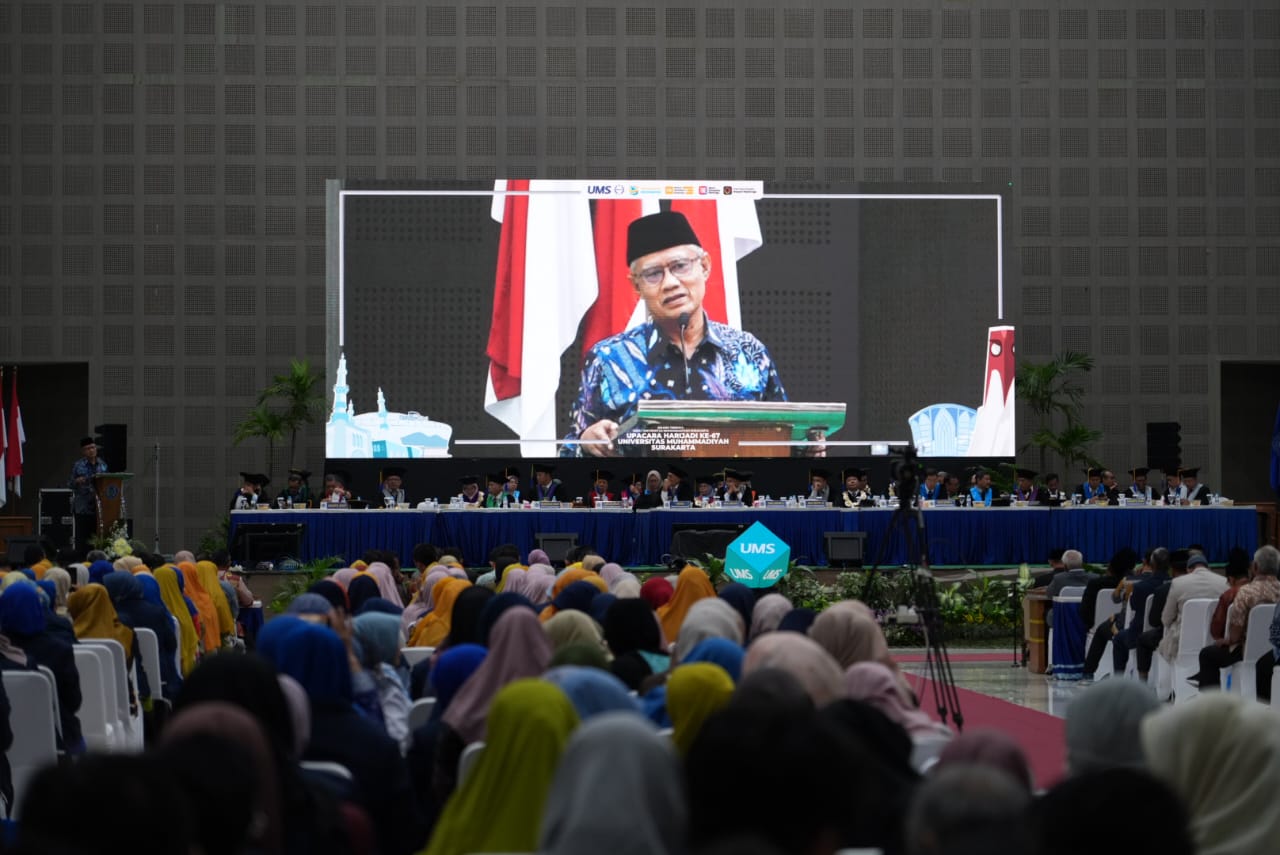 SURAKARTA – Hadiri Milad ke 67 Universitas Muhammadiyah Surakarta (UMS) Jumat (24/10), Ketua Umum Pimpinan Pusat (PP) Muhammadiyah, Haedar Nashir lakukan dua groundbreaking dan satu peresmian.