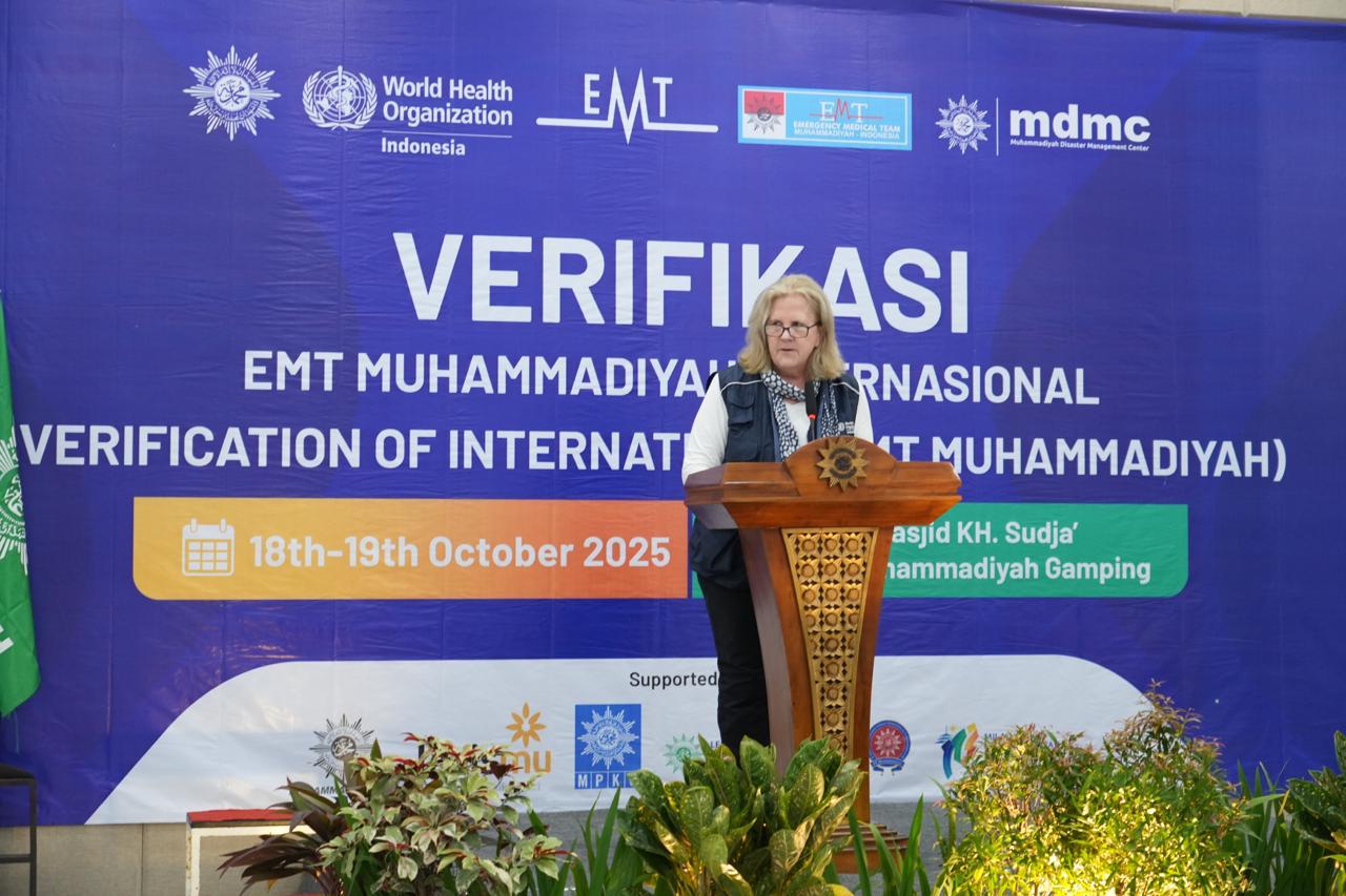 “WHO turut menyampaikan selamat kepada EMT Muhammadiyah atas pencapaian luar biasa ini sebagai tim medis darurat terverifikasi pertama di Indonesia. Tim ke-18 di kawasan Western Pacific dan urutan ke-63 di dunia,” ujarnya dalam agenda yang berlangsung di Aula Masjid KH Sudja’, PKU Muhammadiyah Gamping, pada Sabtu (19/10).