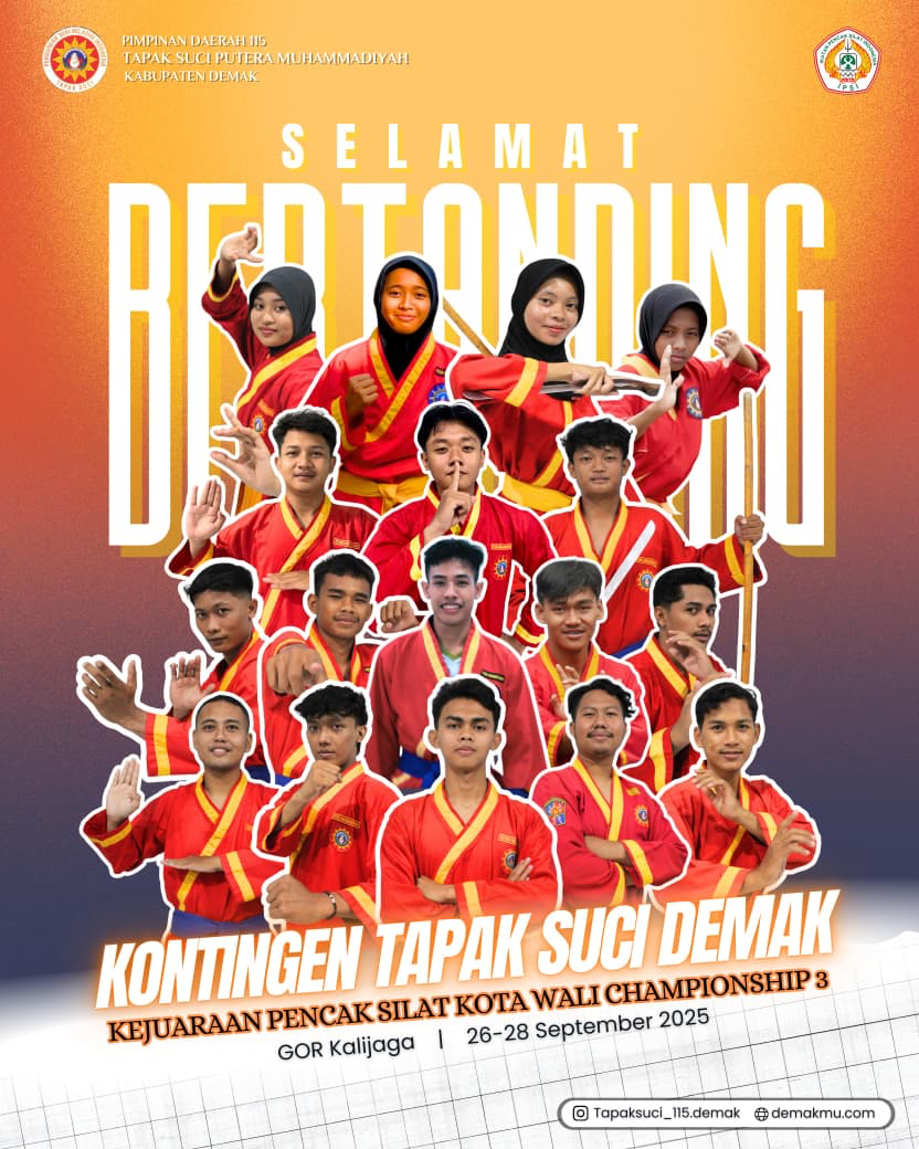 DEMAK — Pimpinan Daerah 115 Tapak Suci Putera Muhammadiyah Kabupaten Demak kembali menurunkan atlet-atlet terbaiknya dalam ajang Kejuaraan Pencak Silat Kota Wali Championship 3, yang sekaligus menjadi bagian dari Seleksi Pra PORPROV Jawa Tengah. Pertandingan akan berlangsung di GOR Kalijaga, Demak, pada 26–28 September 2025.