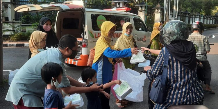 Pembagian makanan berbuka puasa yang bertemakan ‘Berbagi 1.000 Takjil “Kokohkan diri, Tingkatkan Kepedulian, Raih Kemenangan”.