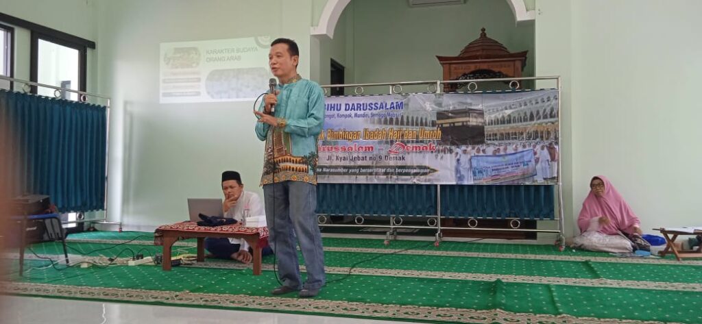 Demak — Kelompok Bimbingan Ibadah Haji dan Umroh (KBIHU) Darussalam Demak menggelar kegiatan bimbingan manasik haji pekan ketiga dengan tema “Mengenal Budaya Makkah–Madinah”, Ahad (19/10/2025) di Masjid Chikmah RS Hj. Fatimah Sulhan PKU Muhammadiyah Demak, Jalan Hadiwijaya No. 18 Mangunjiwan, Demak.