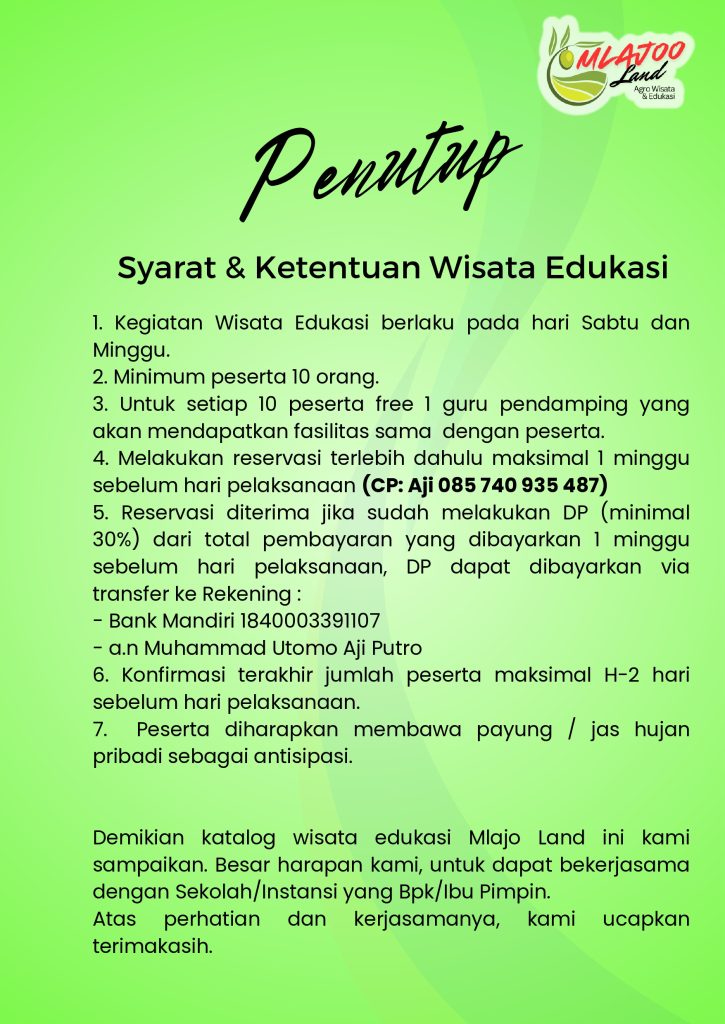 Mlajoo Land bukan sekadar tempat rekreasi biasa, tetapi sebuah laboratorium hidup bagi para siswa dan masyarakat untuk lebih mengenal dunia pertanian dan lingkungan. Dengan biaya terjangkau, fasilitas lengkap, serta program interaktif yang menarik, tempat ini menjadi destinasi wisata edukasi yang wajib dikunjungi bagi siapa saja yang ingin belajar sambil bersenang-senang.