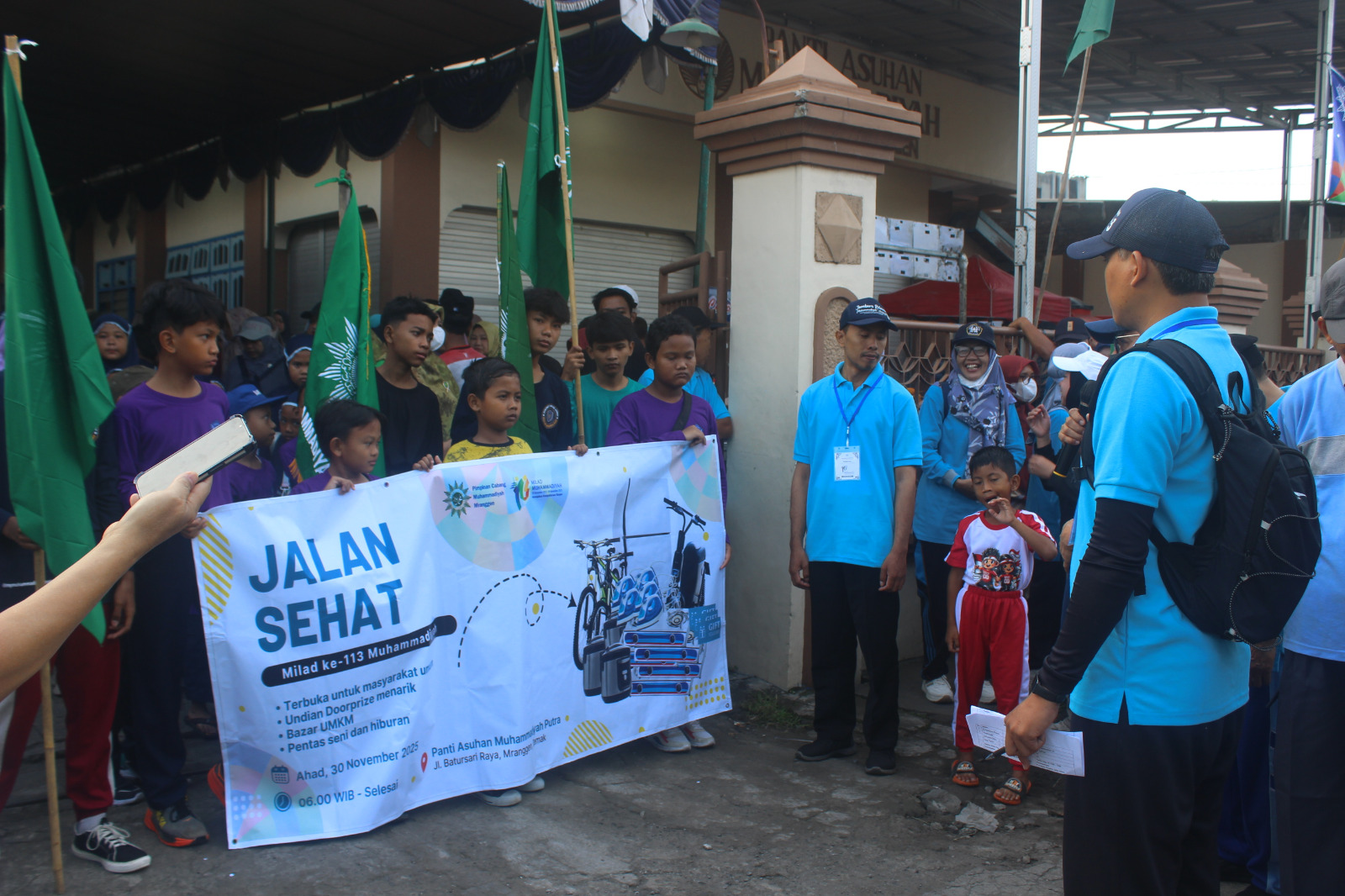 Demak – Pimpinan Cabang Muhammadiyah (PCM) Mranggen, Demak, Jawa Tengah menyelenggarakan Jalan Sehat dalam rangka Milad ke-113 Muhammadiyah, Ahad, (30/11/2025). Acara berlangsung di Komplek Lembaga Kesejahteraan Sosial Anak (LKSA) Panti Putra Muhammadiyah, Jalan Batursari Raya, Batursari, Mranggen, Demak.