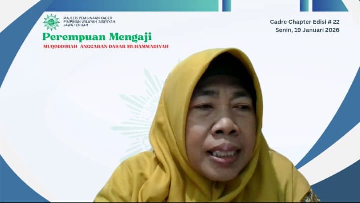 Demak — Majelis Pembinaan Kader (MPK) Pimpinan Wilayah ‘Aisyiyah (PWA) Jawa Tengah menyelenggarakan kegiatan Chader Chapter Perempuan Mengaji Edisi ke-22. Kegiatan ini dilaksanakan oleh MPK Pimpinan Daerah ‘Aisyiyah (PDA) Demak pada Senin, 19 Januari 2026, secara virtual.