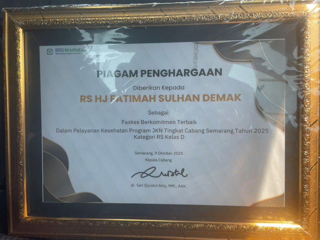 SEMARANG — RS Hj. Fatimah Sulhan PKU Muhammadiyah Demak memperoleh penghargaan sebagai “Faskes Berkomitmen Terbaik” dalam Pertemuan Nasional Fasilitas Kesehatan BPJS Kesehatan Tahun 2025 yang diselenggarakan di Hotel Aruss, Semarang. Penghargaan ini menjadi bentuk apresiasi atas komitmen fasilitas kesehatan dalam mendukung penyelenggaraan layanan peserta BPJS Kesehatan.