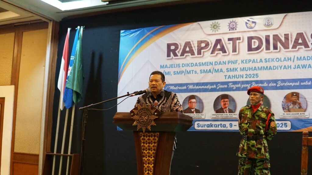 Surakarta – Majelis Pendidikan Dasar, Menengah, dan Pendidikan Nonformal (Dikdasmen PNF) Pimpinan Wilayah Muhammadiyah (PWM) Jawa Tengah menggelar Rapat Dinas yang dihadiri jajaran Majelis Dikdasmen PNF Pimpinan Daerah Muhammadiyah (PDM) se-Jawa Tengah dan para kepala sekolah serta madrasah Muhammadiyah. Acara berlangsung pada Sabtu (9/8/2025) di Lor In Hotel, Solo.